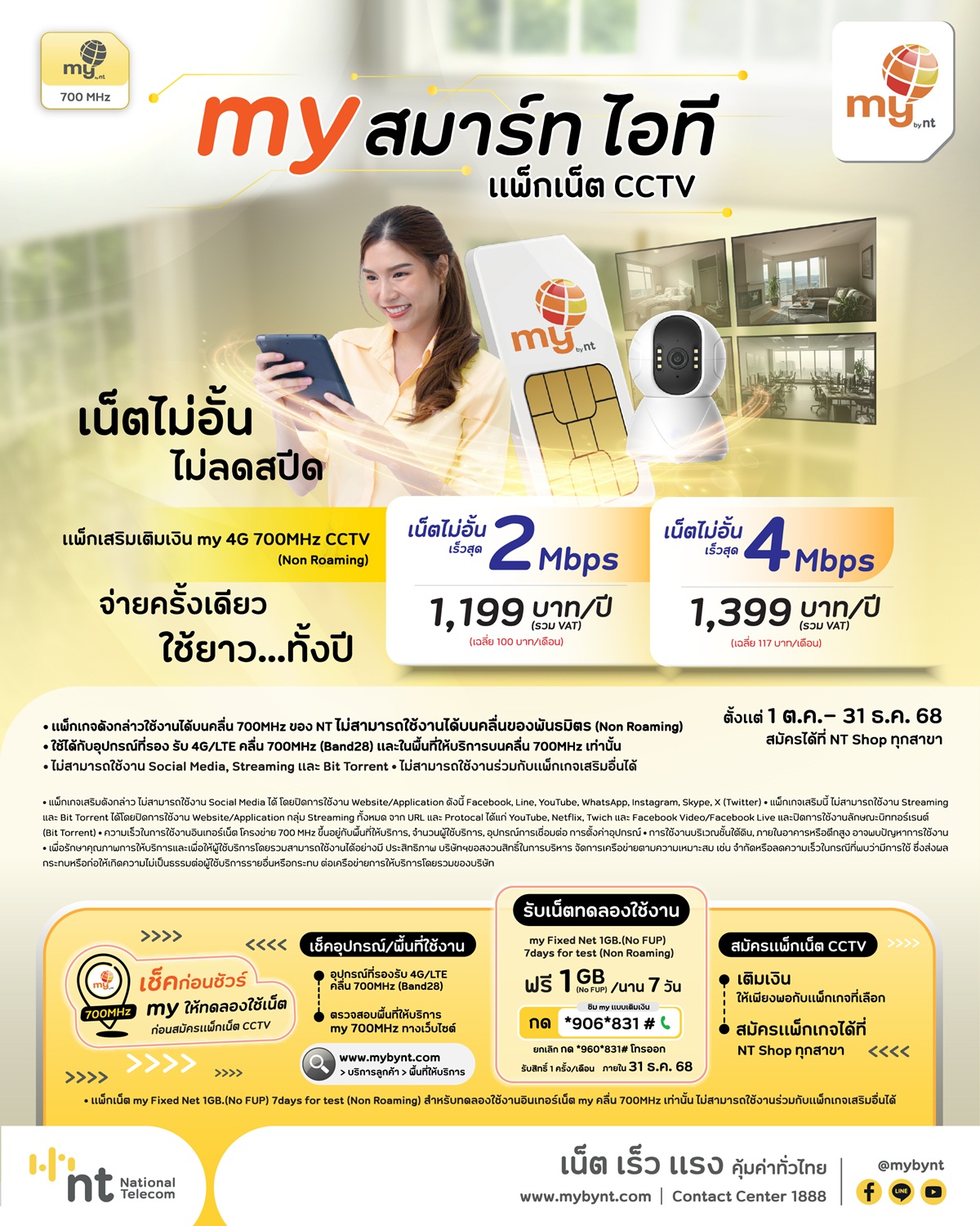 แพ็กเกจเสริมแบบเติมเงิน my 4G 700MHz CCTV