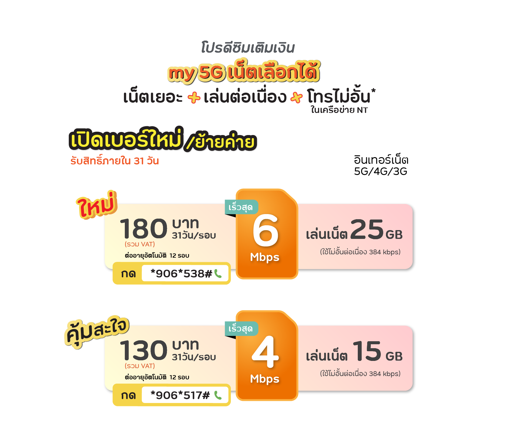 • my 5G เน็ตเลือกได้ (เปิดเบอร์ใหม่/ย้ายค่าย)